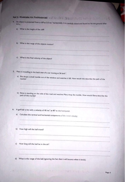 First note that graphs in this text have perpendicular axes, one horizontal and the other vertical. Take the example of the person sitting in a train moving east. Kinematic equations relate the variables of motion to one another. Projectile motion worksheet a ball is kicked horizontally at 8.0 m/s from a cliff 80m high. Just a few examples are the tension in the rope on a tether ball, the force of earth's gravity on the.